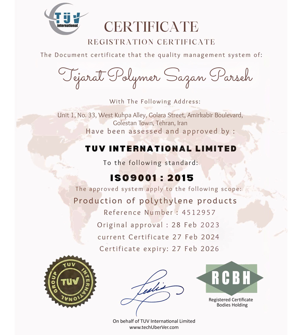 شركت تجارت پليمرسازان پارسه با در اختيار داشتن ماشين آلات توليد فيلم پلى اتيلن سه لايه از برند Hosokawa alpine آلمان توليد كننده انواع فيلم يلى اتيلن، لفاف بسته بندی در عرضها و ضخامت هاى مختلف ميباشد.